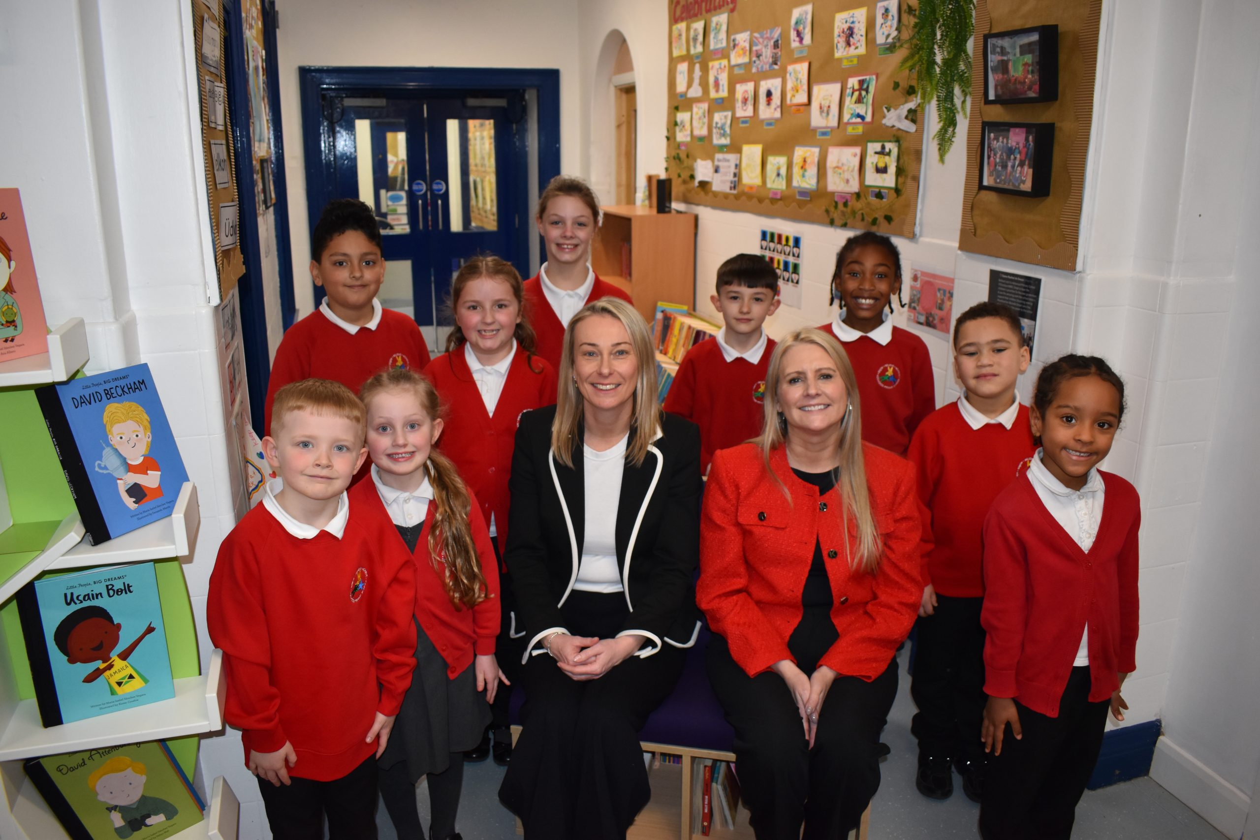 📸 Michelle Smart, Headteacher at Adswood Primary, and Karen Burns, CEO of Victorious Academies Trust, with Adswood pupils.